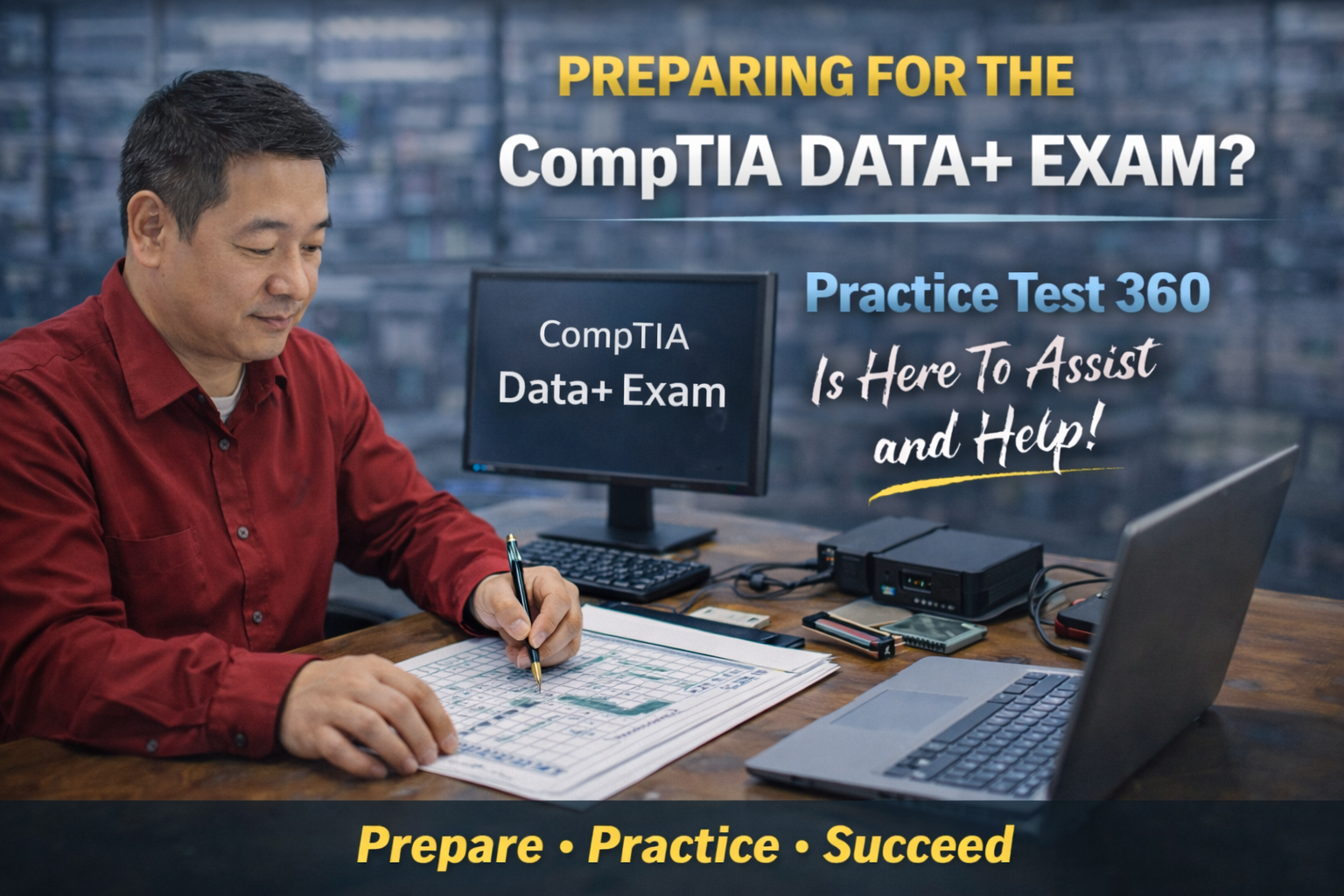 Practice platforms like PracticeTest360.com allow learners to simulate real certification exam conditions and practice working with data analysis questions before taking the official CompTIA Data+ exam.